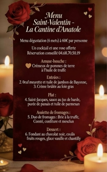 Pour célébrer l’amour comme il se doit, La Cantine d’Anatole vous invite à un voyage gourmand tout en douceur et en raffinement.